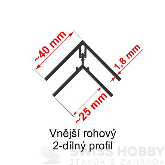 Vnější rohový profil P517 slouží pro napojení dvou obkládaných ploch pod pravým úhlem, vytváří pravoúhlý roh.