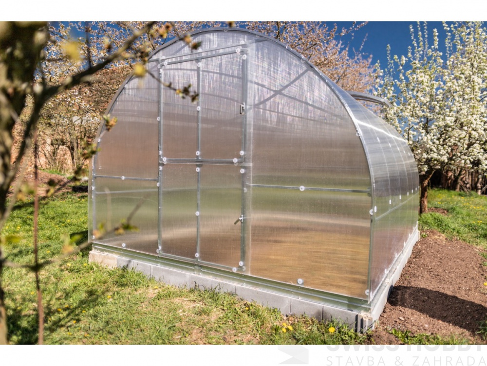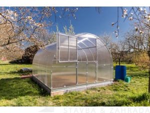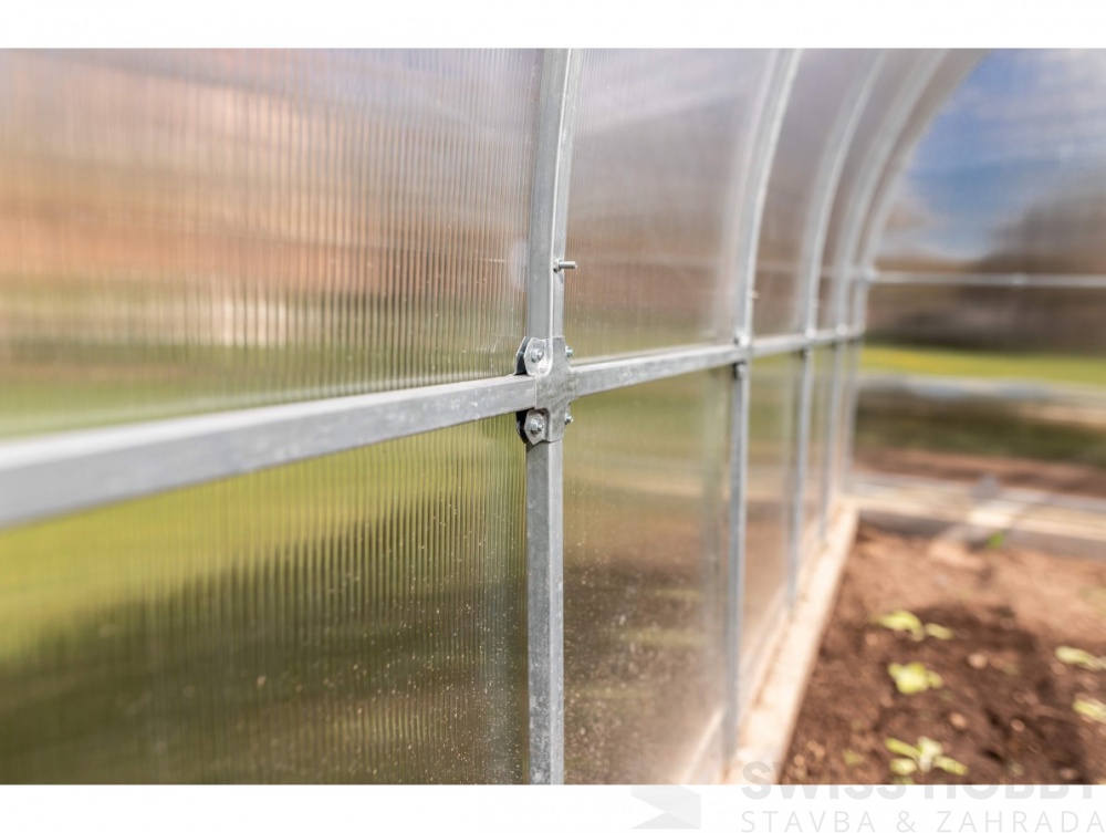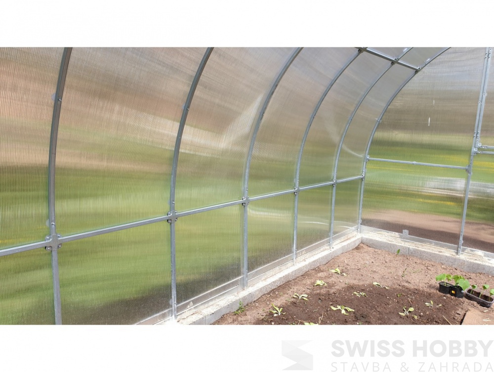 Další specialitou tohoto skleníku je základový bezúdržbový profil, který zajišťuje stabilitu konstrukce. Skleník Gardentec Classic T tak lze upevnit podle priority každého zákazníka. Skleník je možné kotvit uživatelsky velice snadným zapuštěním do země (fixaci skleníku zajišťují silné kotvy ve tvaru "T", které nepovolí jeho uvolnění). Zahradní skleníky dodáváme jako stavebnici o rozměrech 2 x 3 m; 4 x 3 m; 6 x 3 m; 8 x 3 m (pozinkovaná jeklová konstrukce + polykarbonát Guttagliss) s podrobným montážním návodem. Součástí skleníku jsou též 2 čelní větrací okna o rozměru 1 x 1 m, které vám zabrání přehřátí rostlin. Šířka 1 m a výška dveří 2 m Vám umožní pohodlný vjezd do skleníku i s kolečkem. Skleník není průchozí.