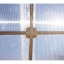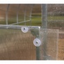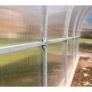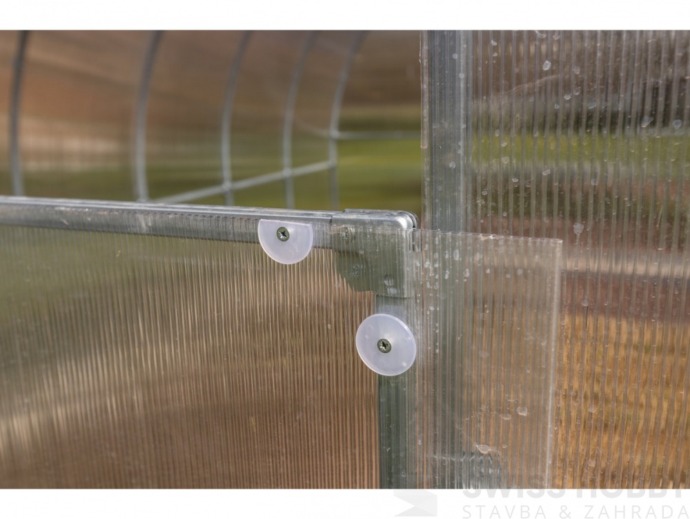 Zasklení je tvořeno 4 mm nebo ve verzi PROFI 6 mm vysokogramážním dutinkovým (komůrkovým) polykarbonátem s UV ochranou, který má zvýšené tepelně izolační vlastnosti, oproti běžně prodávaným skleníkům. Námi dodávaný polykarbonát splňuje veškeré podmínky pro udělení atestace zdravotní nezávadnosti toxikologickým centrem vydaným státním zdravotním ústavem. Můžete si tak bez obav o své zdraví nerušeně pěstovat zeleninu.