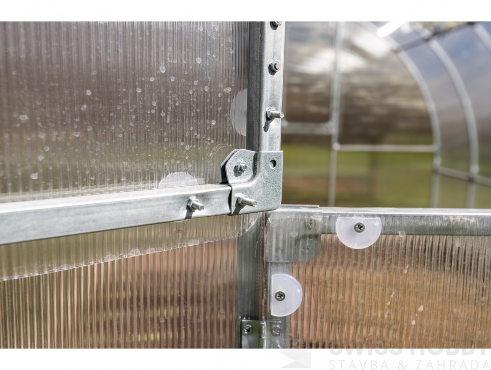 Skleník využívá originálního spojovacího systému a profilů. Na samotnou stavbu skleníku doporučujeme vyhrazení alespoň 1 celého dne. Stavba není technicky náročná, ale vzhledem k robustnosti konstrukce, přesnosti řezání polykarbonátu a především pak množství šroubů vyžaduje relativně více času. Návod k sestavení nebo fotogalerie detailů k sestavení je možné si stáhnout v záložce ke stažení.
