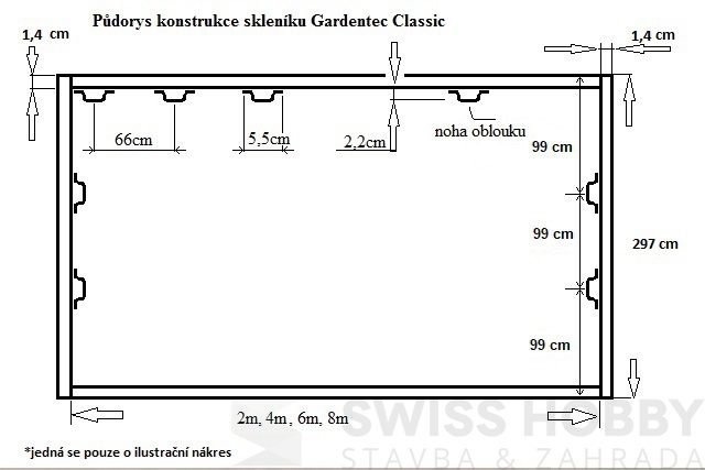 Zahradní skleník z polykarbonátu Gardentec Classic - 8 x 3 m