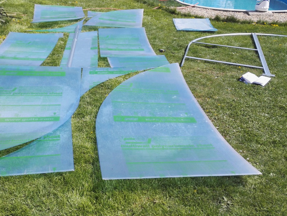 balení obsahuje konstrukce a montážní materiál, polykarbonát Guttagliss Dual, sada těsnění