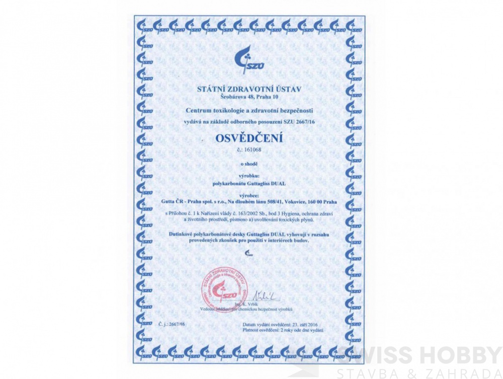 • Prémiový zdravotně nezávadný polykarbonát Guttagliss o síle 6 mm