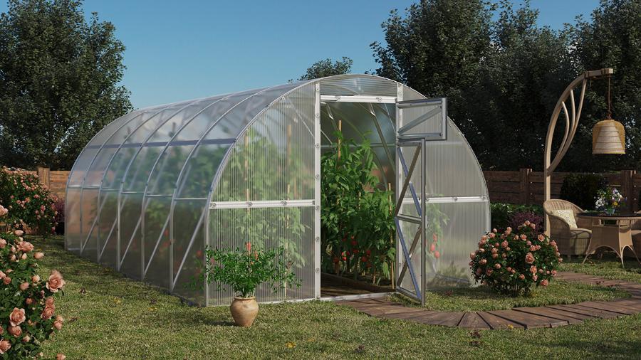 Vysoce odolný zahradní skleník (180 kg/m2) o délce 4, 6, 8, 10, 12 m a šířce 3m. Skleník má zjednodušenou pozink. konstrukci o tl. plechu 0,7 mm, s polykarbonátem  6 mm s UV ochranou. Zahradní skleníky nevyžadují stavbu základů.