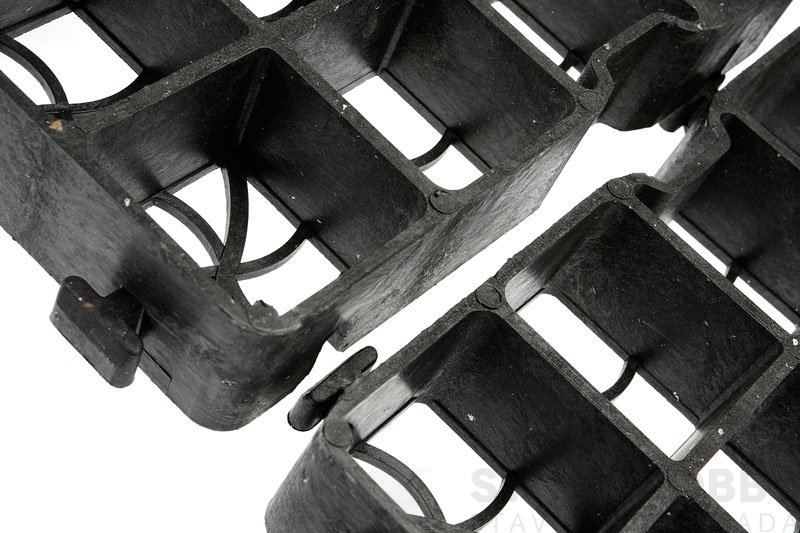 geoSYSTEM GE50 max je nejrobustnější typ zatravňovací dlažby. Díky tloušťce stěny 5 mm snese i bez výplně zatížení 350 t/m2. Díky výšce 5 cm je tento typ dlažby ideální pro zatravnění. Vhodná je ale i výplň štěrkem či jiným kamenivem, keramzitem, pískem, apod.