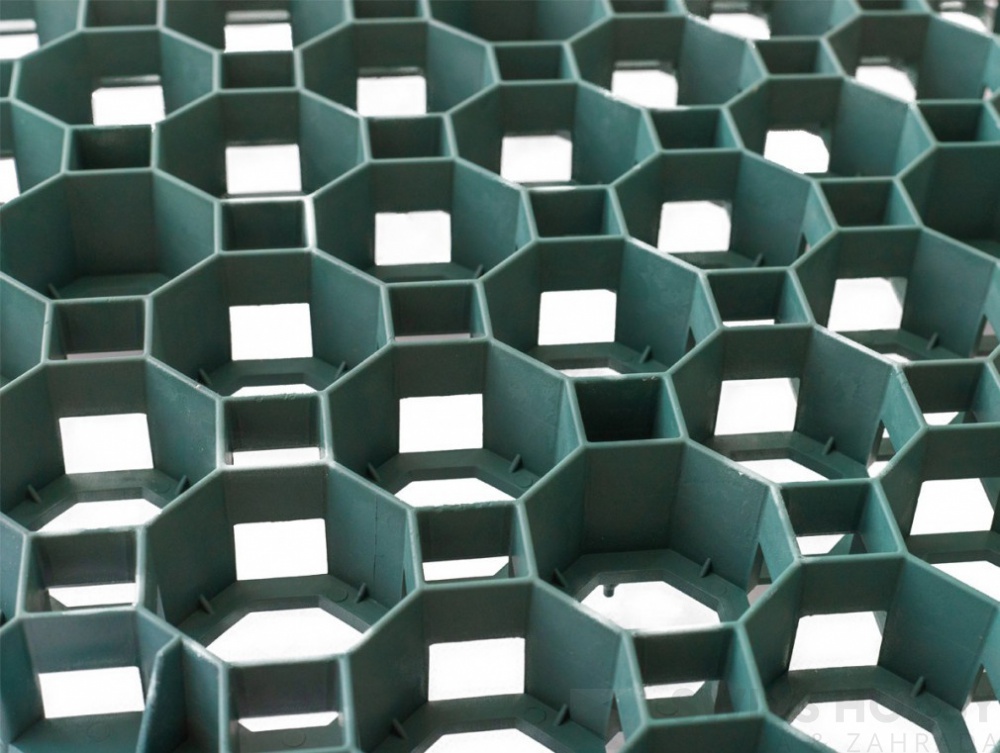 Na zpevnění ploch bez narušení půdy, na zajištění hrází, svahů, chodníků, ochrana proti krtkům, proti vysychání trávníku