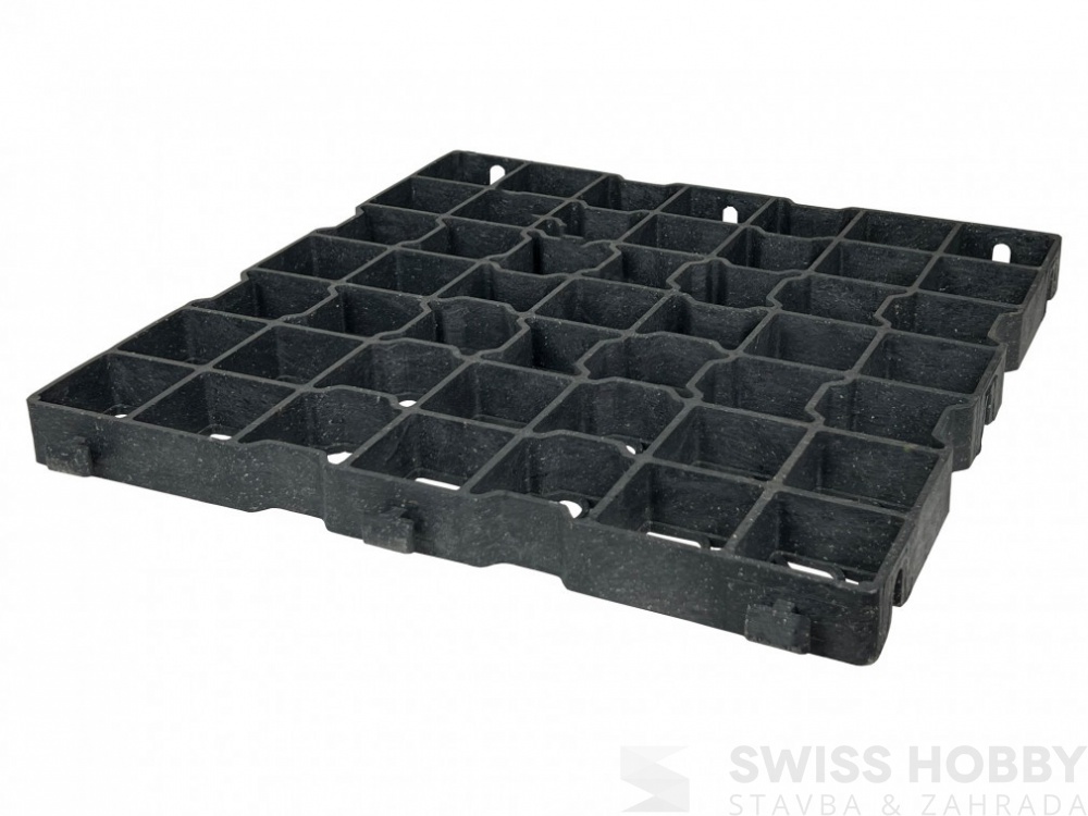 Zátěžová zatravňovací tvárnice s nosností 1000 t určená k zatravnění a zpevnění příjezdových cest, parkovacích ploch, letišť, chodníků nebo výběhů či jezdeckých hal.