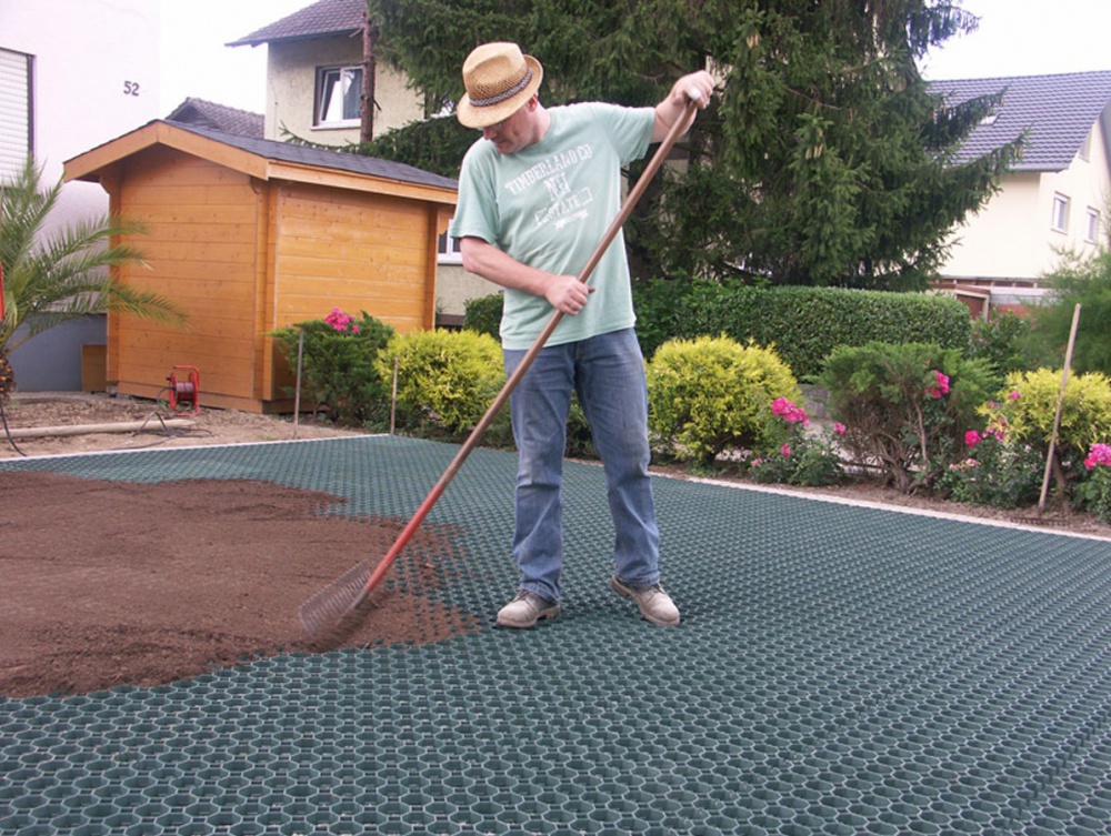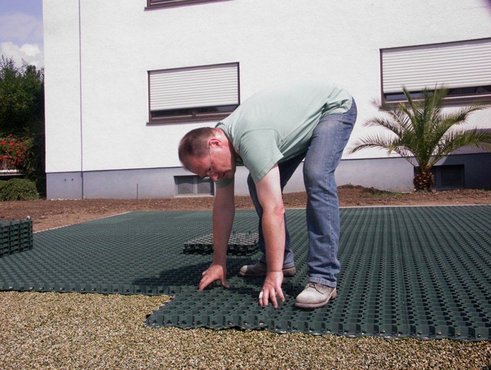 Pokládku provádějte na vyrovnávací vrstvu tak, že vždy začnete u nejnižšího místa a postupně směřujete k nejvyššímu. Pokud byste i přes dřívější vyrovnání povrchu přeci jen potřebovali nějakou část dorovnat, použijte hlinitý písek nebo vhodnou směs jemné drtě a písku. Jakmile celou zamýšlenou plochu pokryjete zatravňovací dlažbou, velmi pečlivě si zkontrolujte stabilitu jednotlivých tvárnic. Ty se totiž nesmí hýbat a ani prohýbat. Ignorování této skutečnosti může ve výjimečných případech při větším zatížení zapříčinit prasknutí tvárnic.